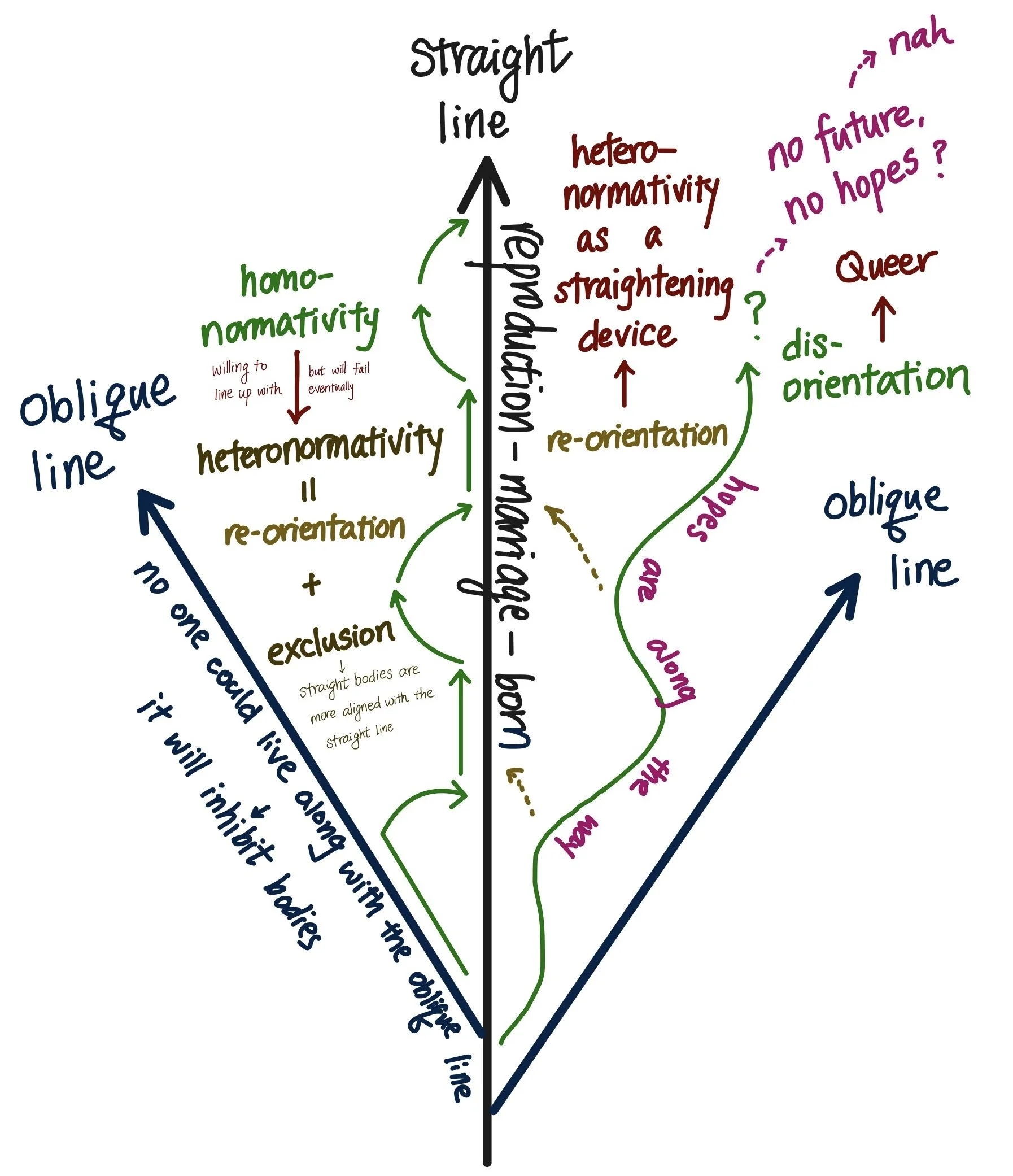 Illustration of Ahmed’s theory on sexual orientation and queer politics (drawn by me)
